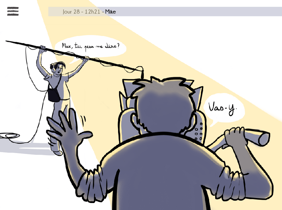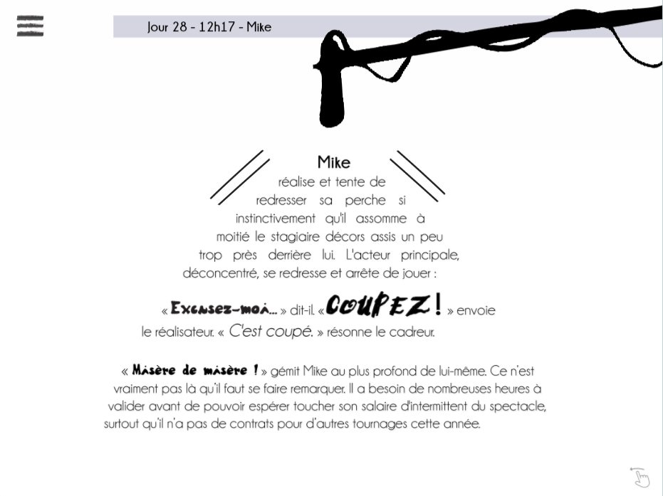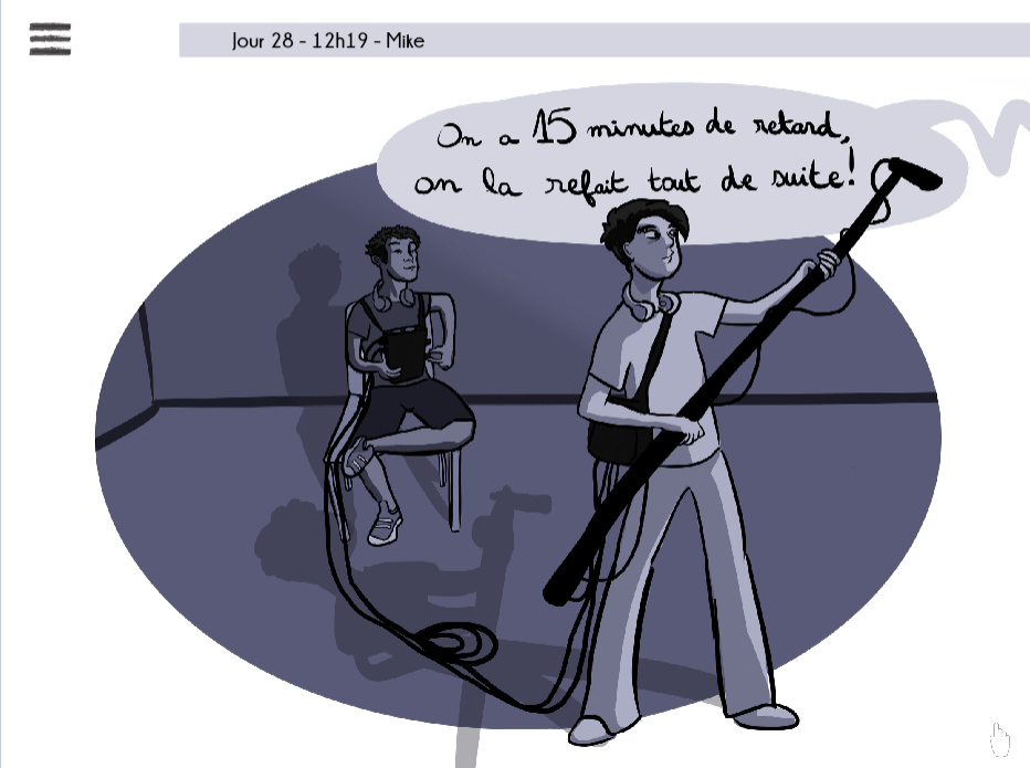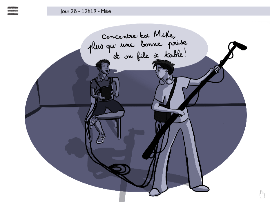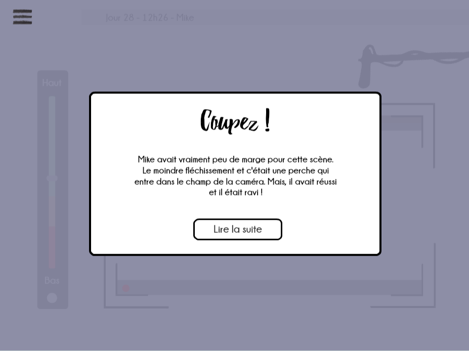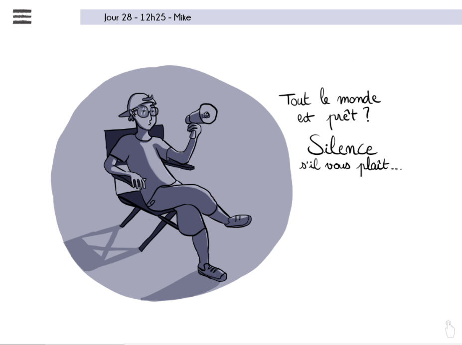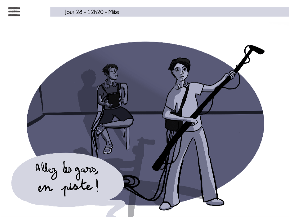 Ce projet porte sur les métiers du cinéma. Nous voulions présenter l'ensemble des métiers de cette industrie, les plus connus comme les moins connus à travers une histoire sur chacun des métiers. Notre objectif était d'informer et d'orienter les jeunes collègiens sur leur orientation future. Réalisation de l'application avec Pandasuite (pour visionner l'application, il faut être munie d'une tablette et télécharger PandaViewer).