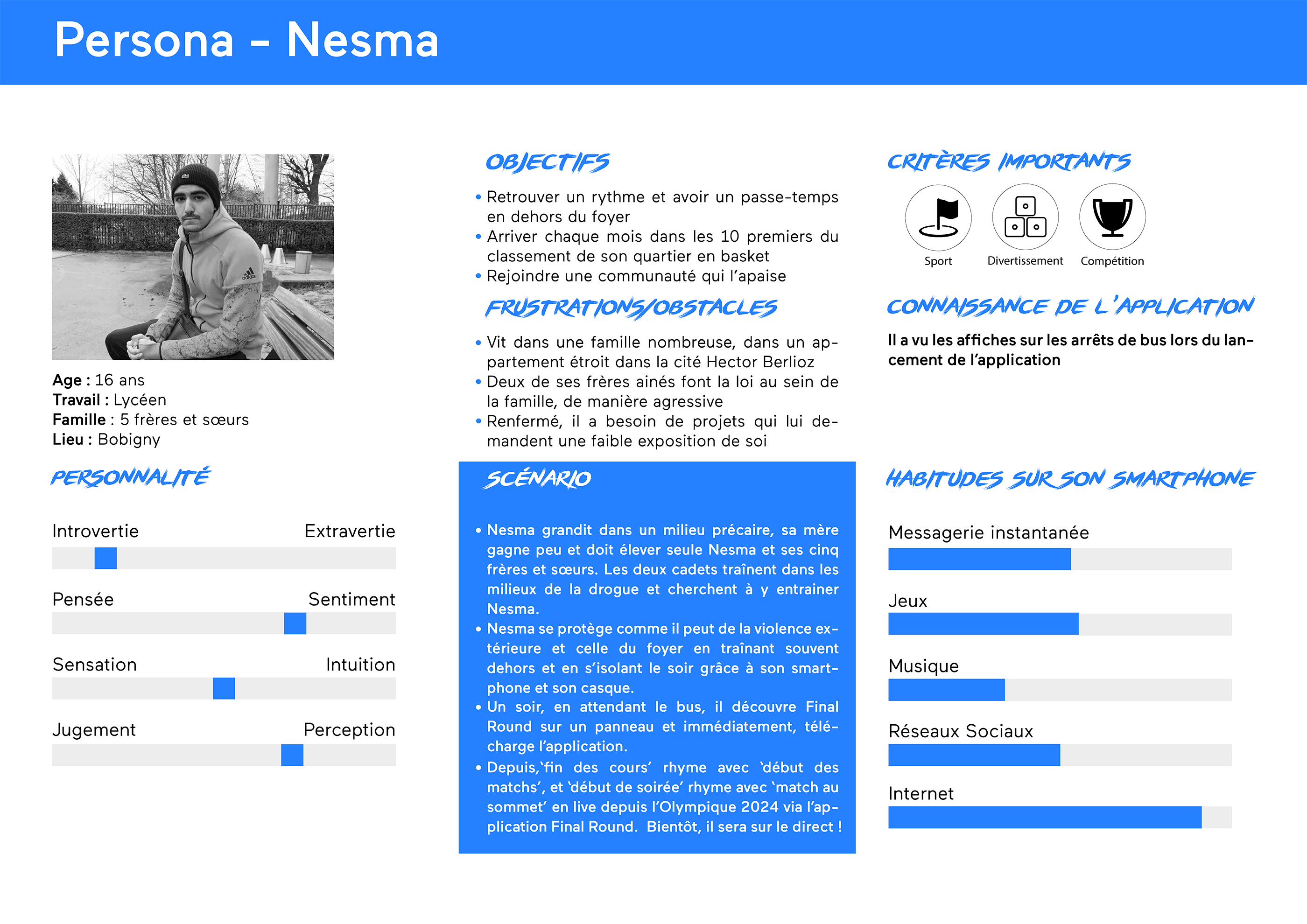 Final Round est un projet réalisé en groupe pendant ma première année de Master. L'objectif était de créer et de fédérer une communauté autour de la dynamique des Jeux Olympiques de 2024 en donnant l'accès à de nouveaux playgrounds, un centre culturel et une application.