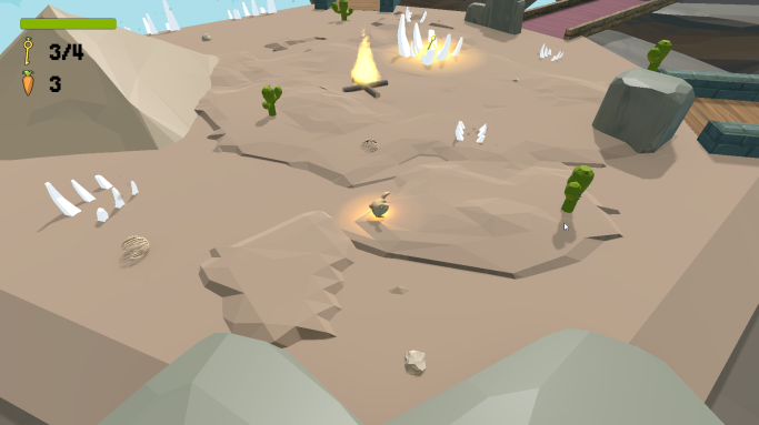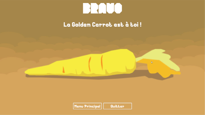 Plusieurs étudiants du master CEN et moi-même avons réalisé Golden Carrot dans sa globalité ! programmation, musiques et sons ainsi que toute la partie 3D. Le principe du jeu est assez simple : récupérer les différentes clés en surmontant des obstacles afin d'obtenir la Golden Carrot !